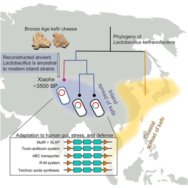 The researchers extracted aDNA from three Bronze Age cheese samples found in the Xiaohe cemetery in Xinjiang, China. The samples, estimated to be around 3,500 years old, were identified as kefir cheese—a traditional fermented dairy product. Using a combination of metagenomic analysis, DNA capture techniques, and whole-genome sequencing, the team explored the microbial content of the ancient cheese and reconstructed the genomes of Lactobacillus kefiranolyticus strains, a key bacterium in kefir fermentation.