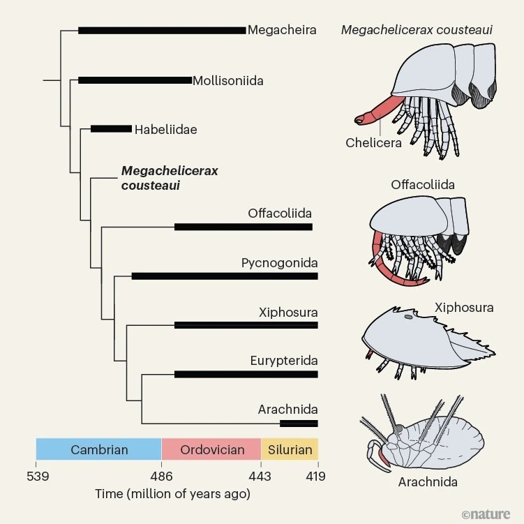 This discovery provides the first unequivocal evidence that large predatory chelicerates existed during the Cambrian Explosion, a time of rapid diversification more than 500 million years ago. It confirms that several enigmatic Cambrian groups, including habeliids, mollisoniids and likely megacheirans, belong to the chelicerate family tree.